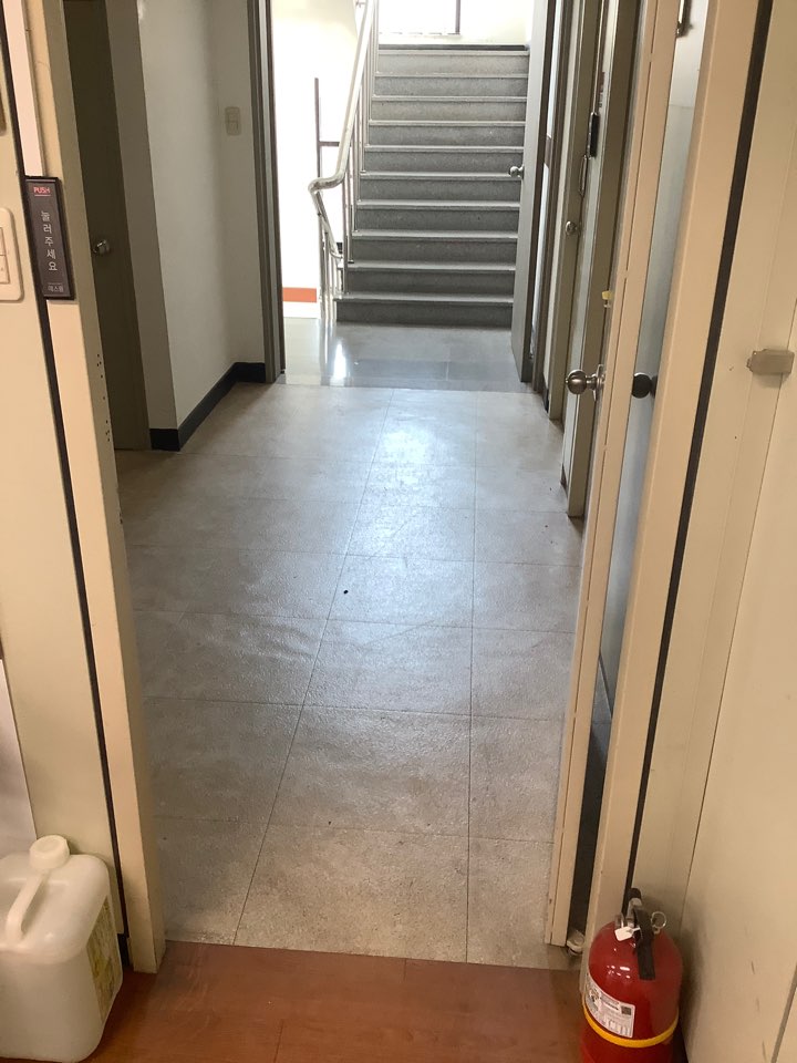 4층으로 올라온 모습입니다 좁은 계단을 통해서 간신히 올렸는데 문 크기도 일반 사이즈가 아니고