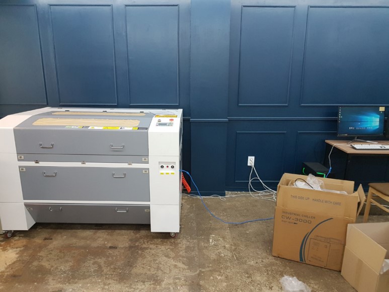 저희 레이저 조각기 ML-6090 설치를 완료했고 사용하시는 컴퓨터에 저희 레이저 전용 구동 프로그램