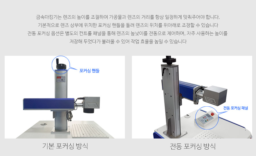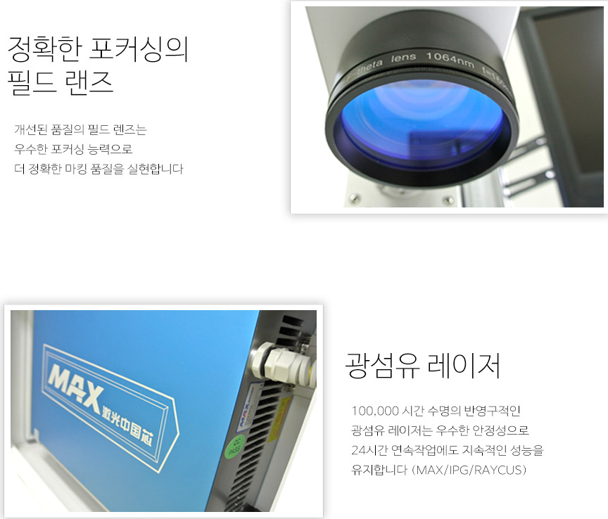 CO2방식의 비금속 레이저 조각기 / 광섬유 레이저 방식의 금속 레이저 가공기계인 파이버 마킹기가 있습니다