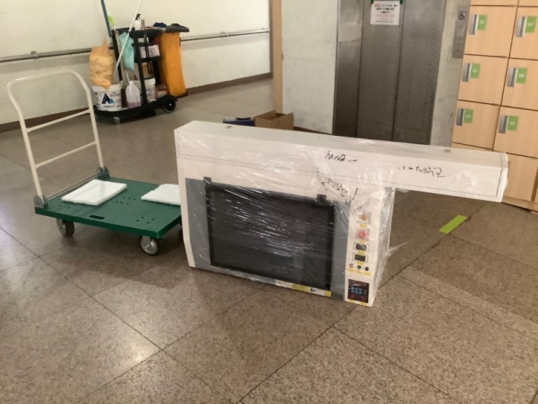 엘리베이터에 평상시대로는 못들어가기 때문에 세로로 세워서 이동을 하였습니다.