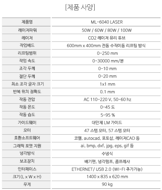 이번에 납품설치를 하게된 레이저마킹기는 ML-6040 레이저커팅기입니다.