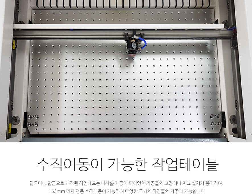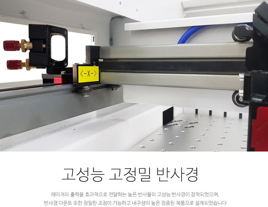 기존 레이저각인기의 단점을 보완하여 자체 설계한 초경량 고속 가이드 레일이 장착된 제품입니다.