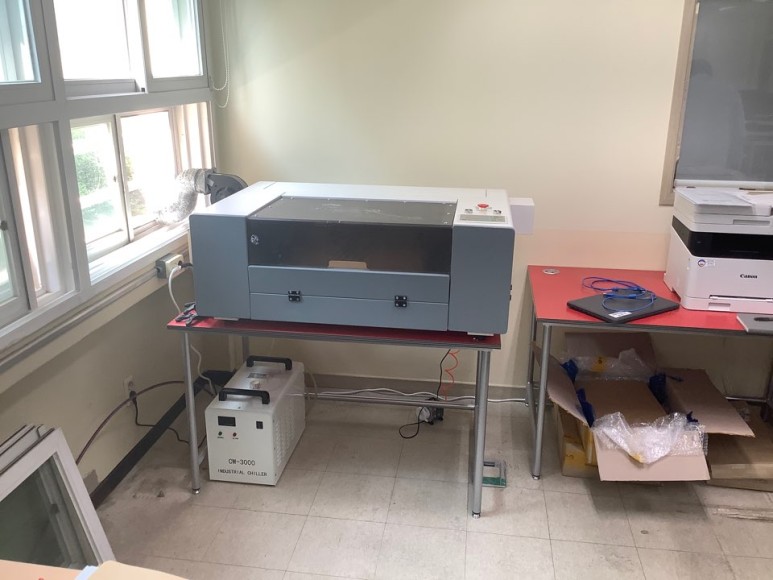 중앙여자중학교에 도착해서 레이저조각기를 내리고 아무탈 없이 설치 장소에 설치를 완료하였습니다.