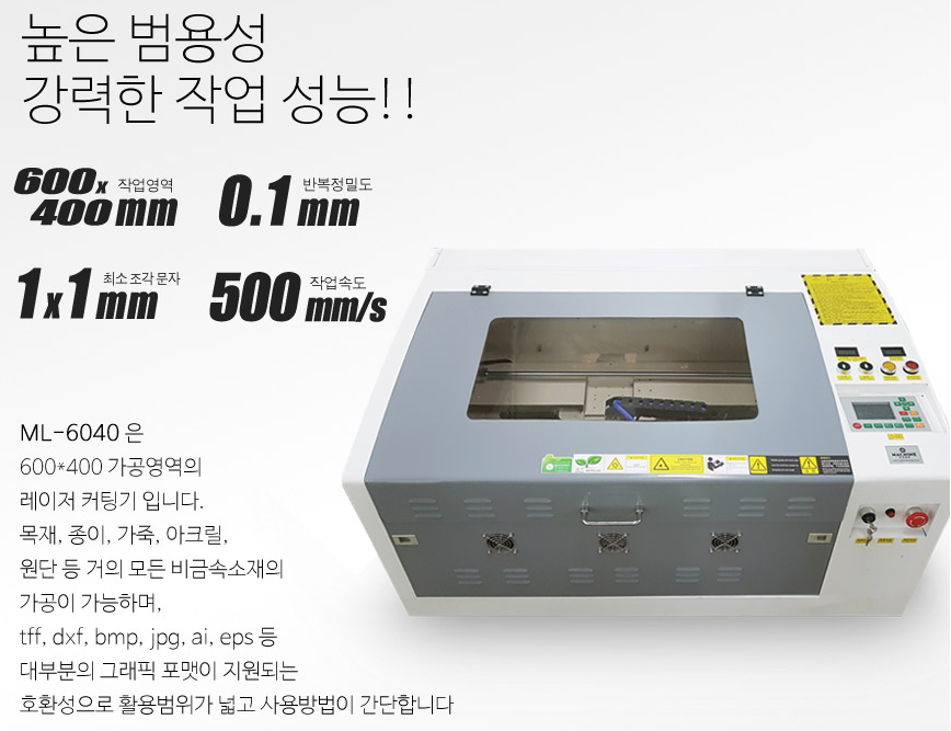 고급형 레이저각인기 ML-6040-RD 프로그램은 각인과 커팅이 동시에 진행이 가능하며,