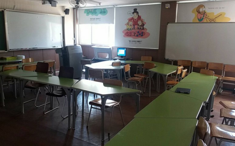 아무래도 스마트교실이다 보니 책상의 위치도 다른 학교들과는 조금 다르네요