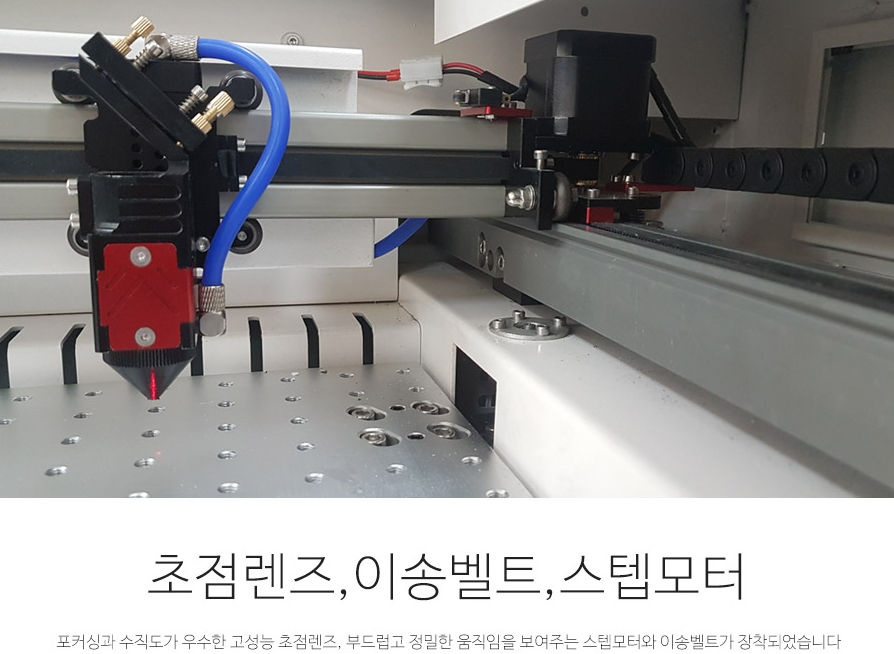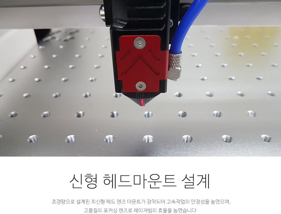 X, Y 축 모두 자체 개발한 최신형 가이드레일을 장착해 커팅 및 마킹속도를 현신적으로 높였습니다.