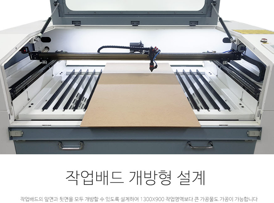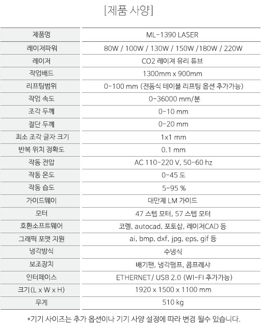 ML-1390 은 1300*900 가공영역의 레이저커팅기로 고사양의 파츠를 사용하여