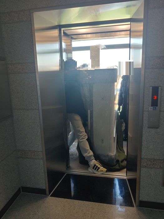 분해 설치 후 엘레베이터를 이용해 3층으로 이동합니다..