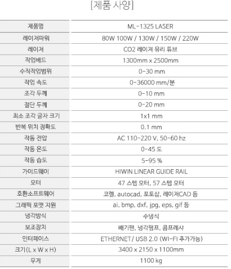 오늘은 대구에 위치한 기계,장비 제조업체측에서 구매해주신 레이저조각기 ML-1325 입니다
