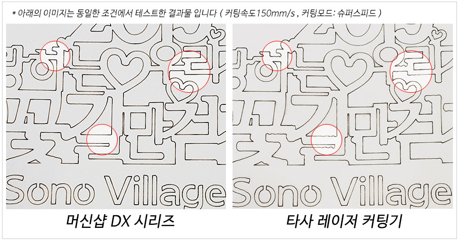 고속의 커팅 작업시 모터나 레일에서 생기는 진동들이 레이저빔에 영향을 주어 가공물이