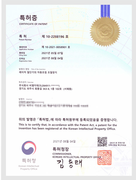 방식으로 기존 오토포커싱 방식의 단점을 완전히 개선하여 특허를 획득 하였습니다
