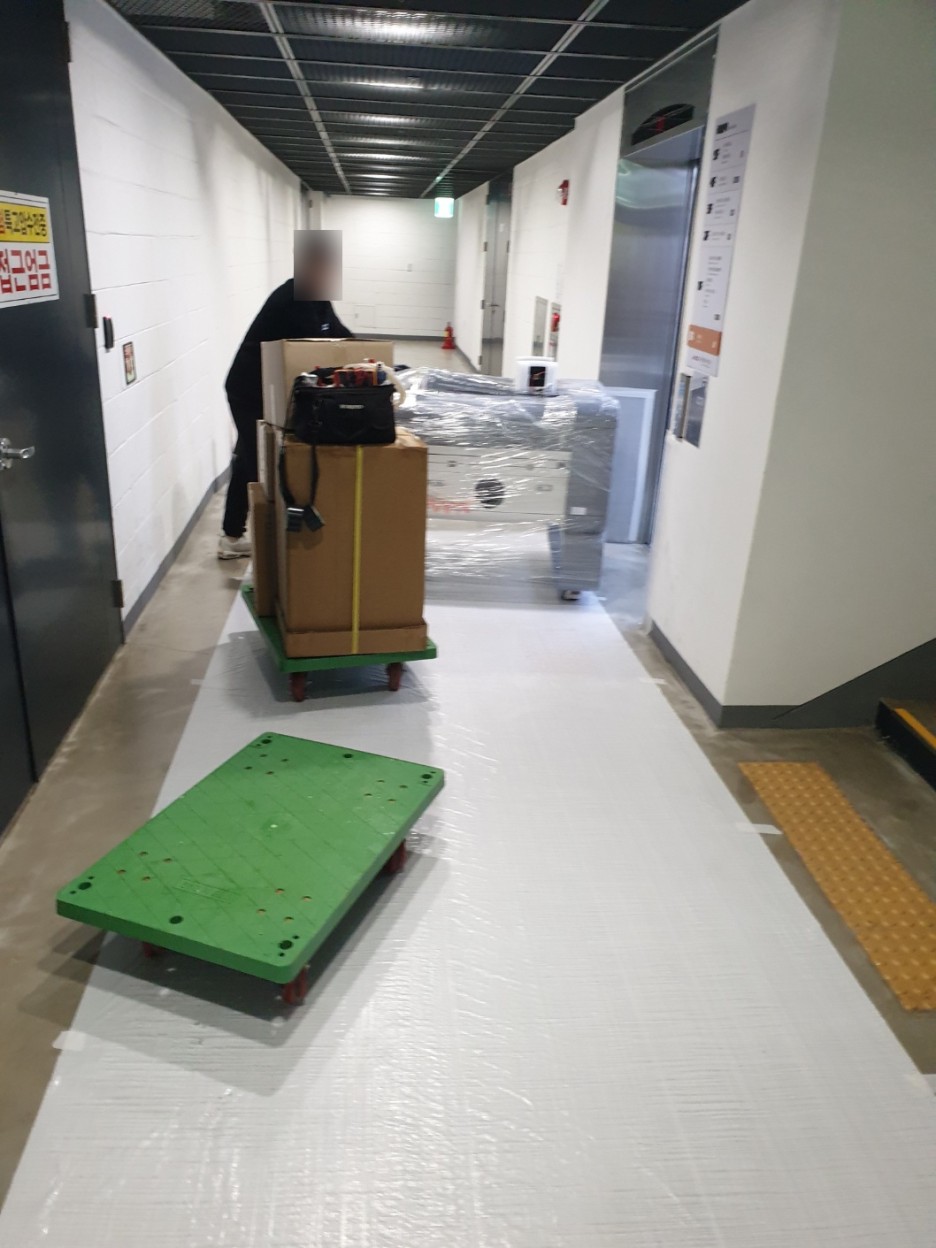 조심스럽게 구성품들과 함께 엘베로 옮겨주었어요 !