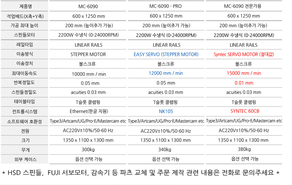 CNC 6090모델은 이송방식과 컨트롤시스템에 따라서