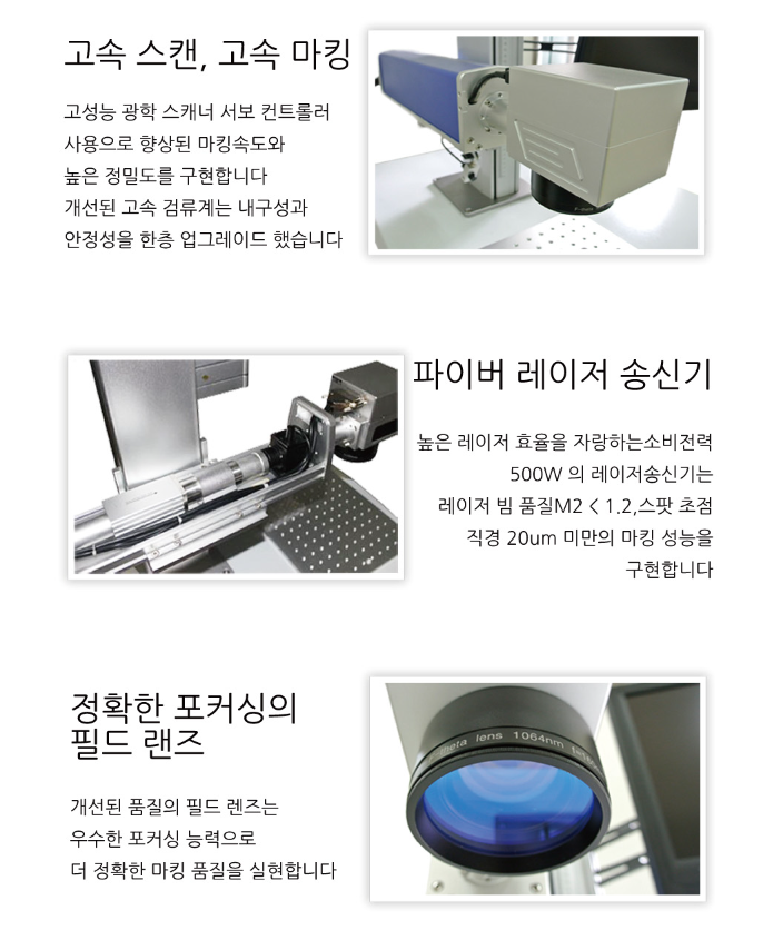 높은 레이저 변환 효율과 정교한 레이저 초점 스팟, 고품질 마킹 성능을 구현하며