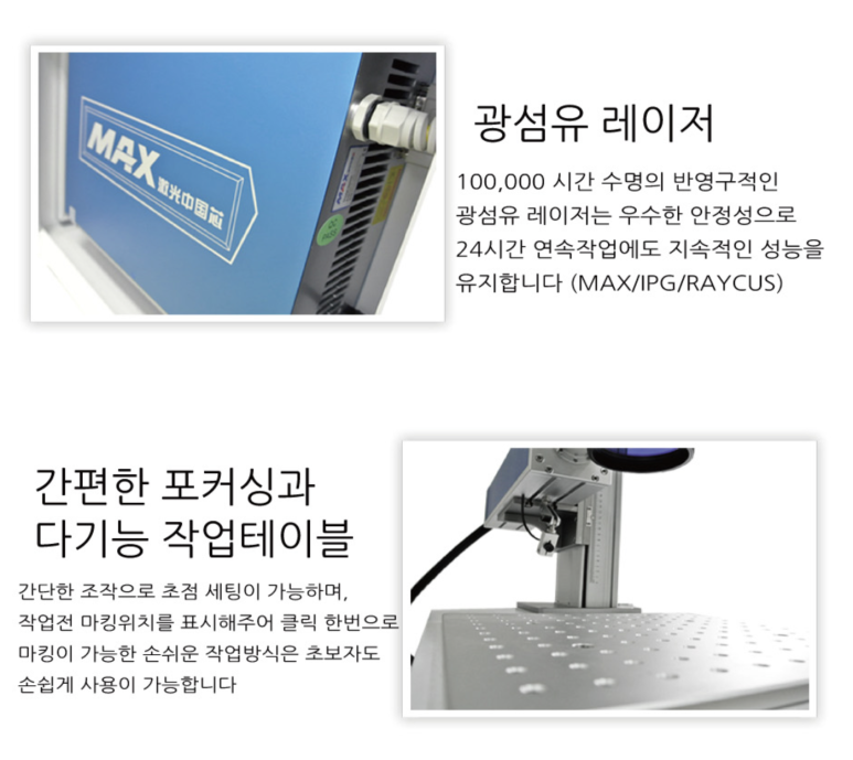 정교한 레이저 초점 스팟, 고품질 마킹 성능, 다양한 그래픽 포멧 지원은 물론