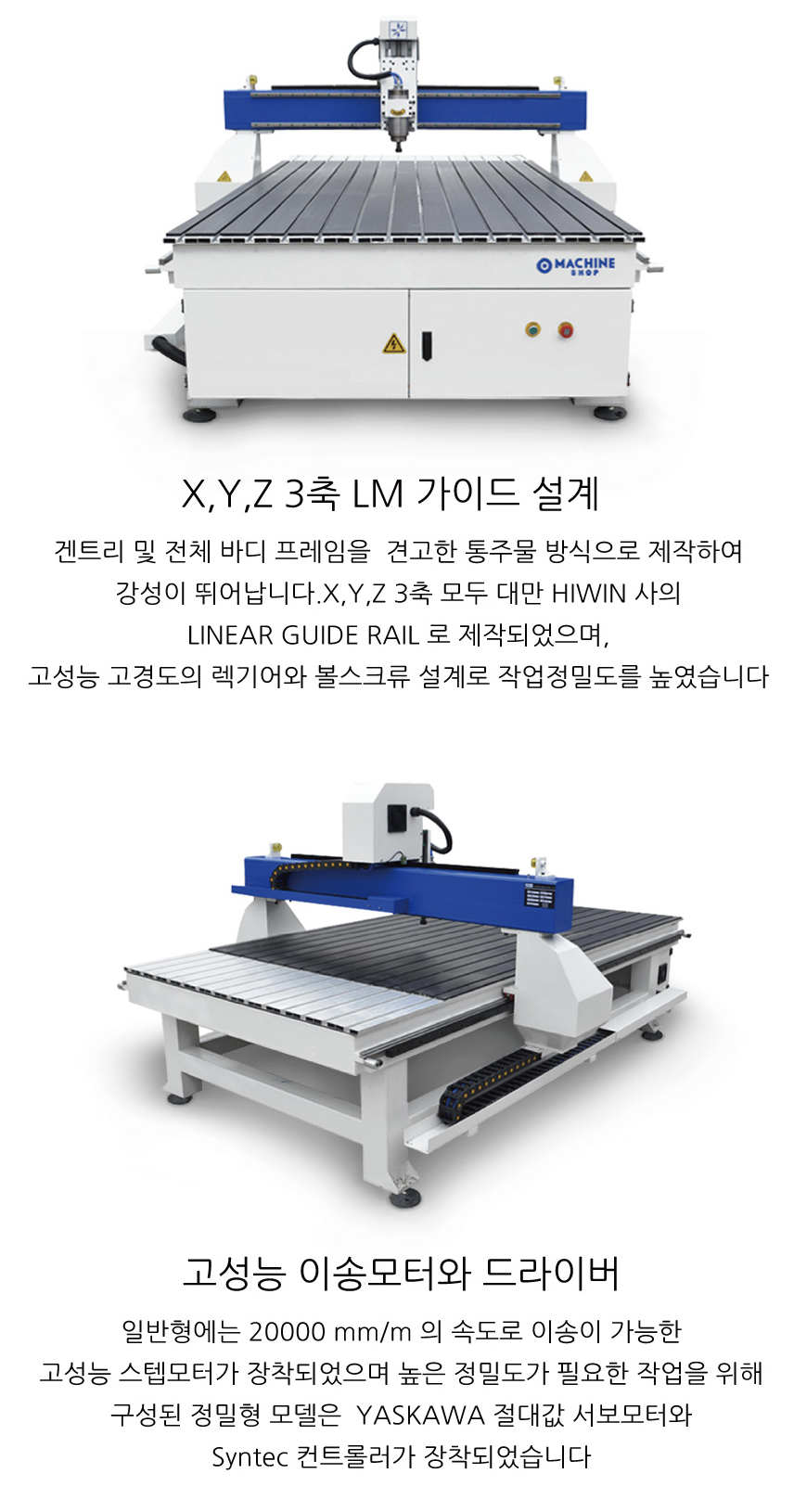 X, Y, Z 축 모두 대만제 LM GUIDE로 제작되었으며