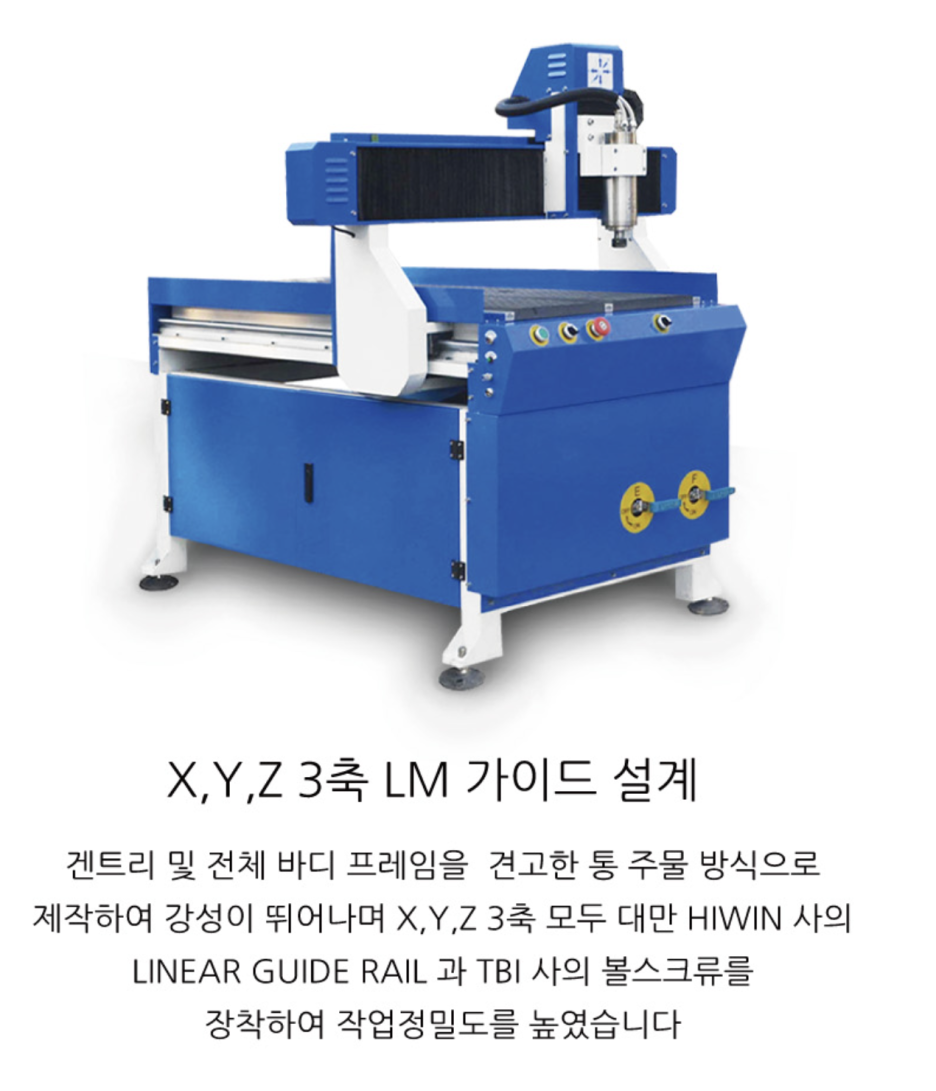 X, Y, Z 축 모두 대만제 LM GUIDE로 제작되었으며
