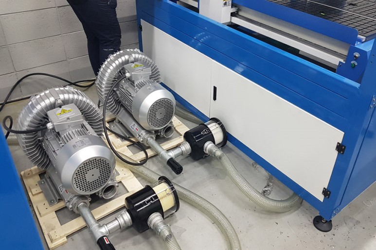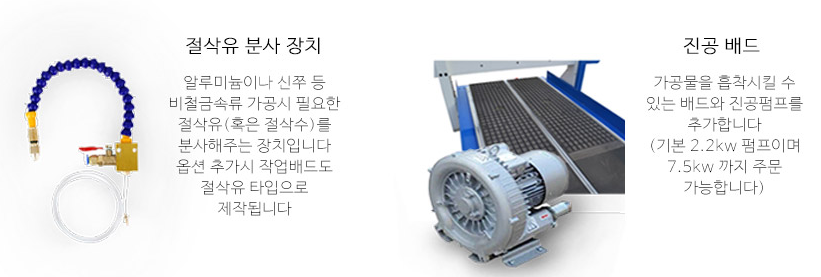 CNC조각기의 진공 배드는 진공펌프를 연결해서 작업물을 바람으로 빨아들여서
